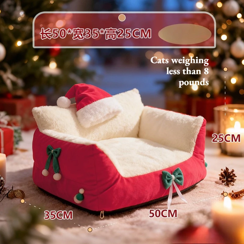 Christmas Cat Bed,Pet Bed with Soft Neck Bolster, Comfort Cat Couch Sofa, Soft PP Cotton Filled, Pets Gift for Christmas