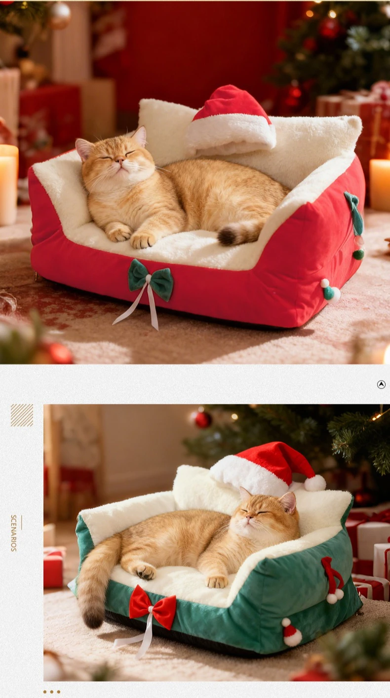 Soft and Skin-friendly Materials: made of polyester and PP cotton, this pet bed offers a soft and skin-friendly surface; The materials are gentle on your pet's skin, whether it's a dog using this dog bed or a cat trying out this Christmas pet bed; It ensures a comfortable resting experience for your beloved pet